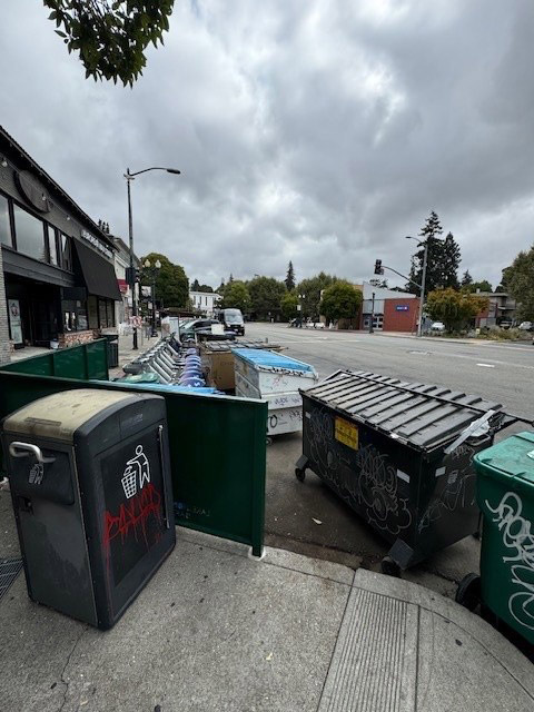 To understand how we ended up with this ongoing blight, we need to look back to a time not long ago. Before 2018 or so, there were no large dumpsters lining Lakeshore Avenue. Businesses had to use smaller waste bins, bring their trash out at night for early morning pickup, and return them during the day—keeping our streets clean and walkable for pedestrians and shoppers.But something changed. At some point, someone within the City of Oakland granted a permit to a single business allowing a large dumpster to be placed on the sidewalk. That single decision set a precedent, and more permits followed. Today, we have a row of large dumpsters, often overflowing, blocking pedestrian paths and becoming a magnet for illegal dumping and general blight.