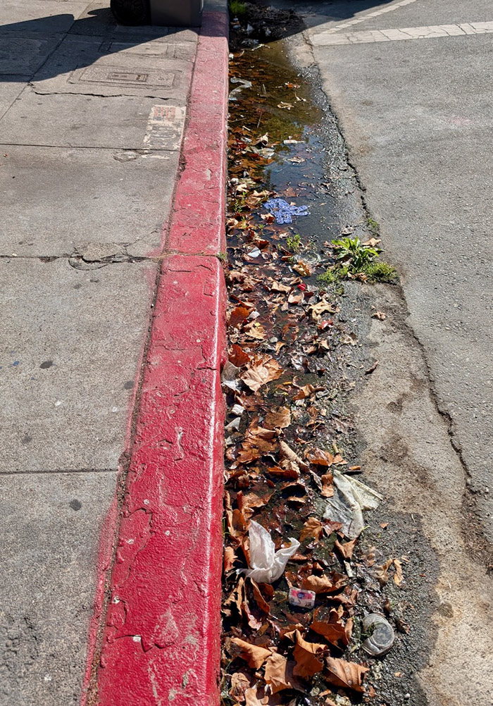I also highlighted locations on the block where the gutters don’t slope properly. The worst example is in front of MeloMelo Kava Bar, where, over time, water becomes stagnant, creating “an ideal breeding ground for harmful bacteria, fungi, and algae, which can trigger allergies, respiratory problems, and gastrointestinal infections.” Ideally, the low spots would be fixed as part of the upcoming OakDOT repaving project, but if that doesn’t happen, the Public Works Department needs to find the resources to do so.